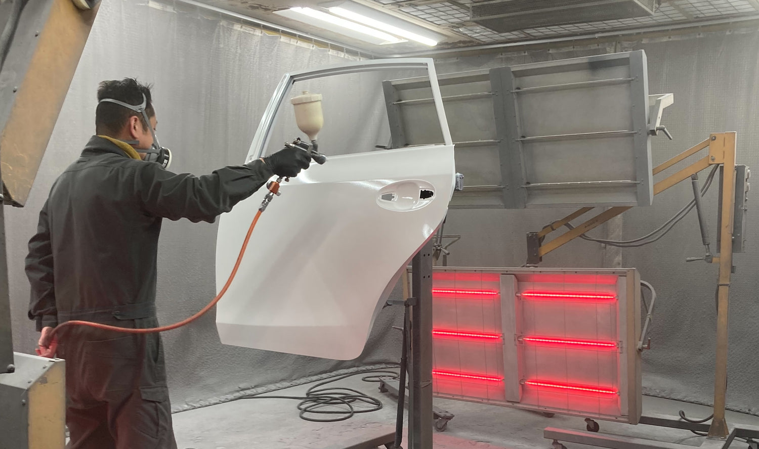 専用の塗装ブース・修理ブースを完備しており、技術と実績のある専門スタッフが新車並みに仕上げます。